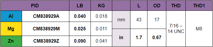 Ánodo para pata Volvo 270 motor disponible en los siguientes materiales: