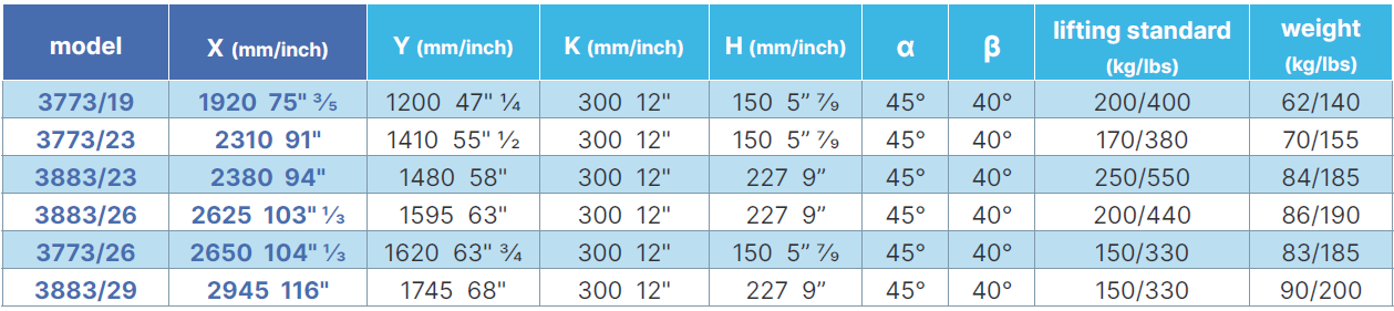 Extensión desde 1920 mm a 2945 mm.
